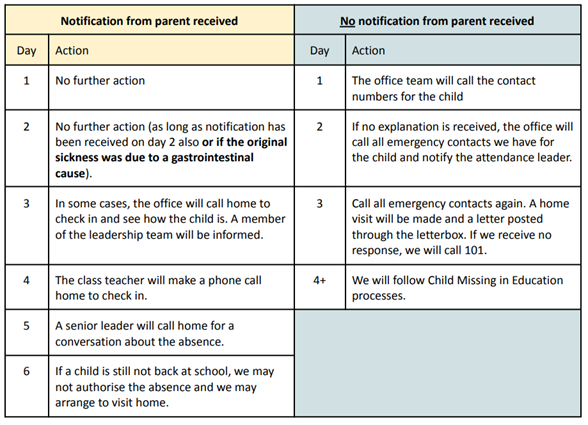 In order to safeguard the children in our school, we have a duty of care to follow up on any unknown absences.